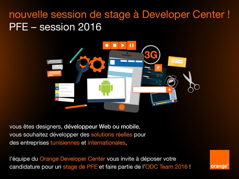 تتشرّف أورانج بإعلامكم عن تنظيم حصّة جديدة خاصّة بمشاريع ختم الدّروس 2016 , و الّتي سيكون مكانها مركز أورانج للتّطوير ( Orange Developer Center ) .