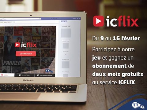 يقدّم لكم المشغّل الوطني إتّصالات تونس فرصة قيّمة لربح جائزة هامّة تتمثّل في إمكانيّة التّمتّع بشهرين مجّانا من خدمة icflix لمشاهدة الأفلام و السّلسلات التّلفزيّة على شبكة الإنترنت , و الّتي إختصّت بها إتّصالات تونس منذ فترة .