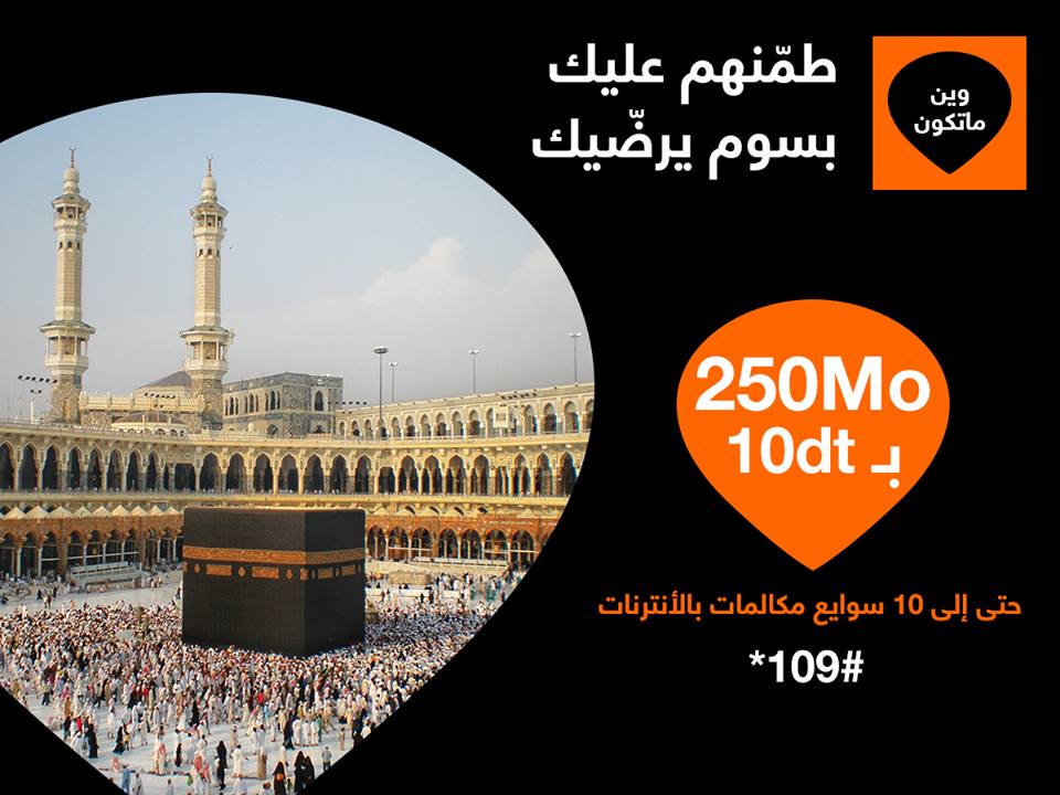 مع عرض Pass Roaming الجديد من مشغّل الإتّصالات الرّائد أورانج تونس, بإمكان المعتمر مكالمة أحبابه و أفراد عائلته إنطلاقا من العربيّة السّعوديّة لطمأنتهم و تقبّل التّهاني.