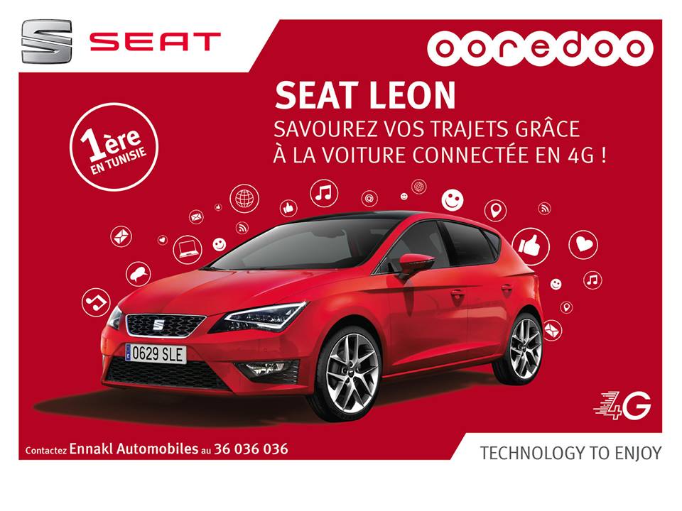هذه العمليّة تتمّ من خلال تقديم المشغّل أوريدو لباقة MIFI 4G لفائدة المستخدم الّذي يقتني سيّارة من نوع Seat Leon . و هذه الباقة الخاصّة سيتمّ إدماجها في سيّارتكم .