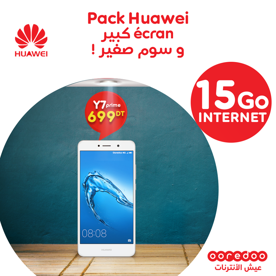 باقة هواوي الجديدة من أوريدو تضمّ الهاتف الذّكيّ Huawei Y7 إلى جانب 15 جيقا كمقدار إنترنت, و ذلك مقابل سعر إجماليّ محدّد ب699 دينار .