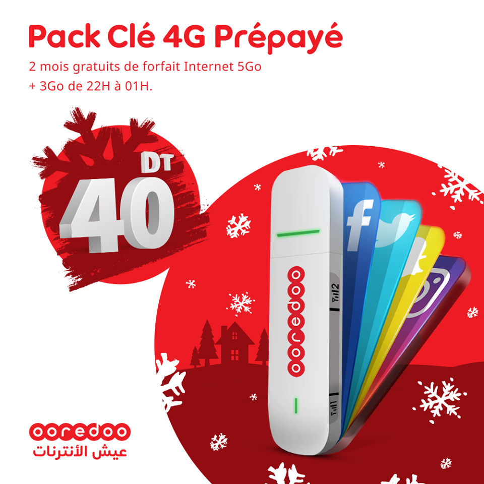 أعلن مشغّل الإتّصالات أوريدو تونس منذ بضعة أيّام عن عرض تجاريّ جديد لشبكات الإنترنت لفائدة حرفائها, من خلال باقة Clé 4G مسبقة الدّفع.
