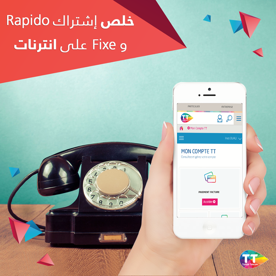 بموجب هذه الخدمة الجديدة, سيتمكّن حرفاء إتّصالات تونس من تفعلي عمليّات خلاص إشتراكات خدمة Rapido للإنترنت و فواتير القارّ , عن بعد و من أيّ مكان يكونون فيه, عبر منصّة إلكترونيّة معدّة للغرض.