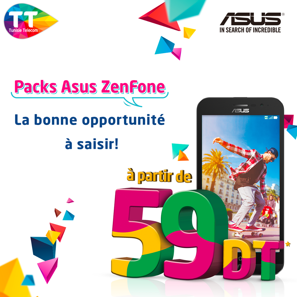 أعلن مشغّل الإتّصالات الوطني, إتّصالات تونس, منذ أيّام قليلة, عن عرضه التّجاري الخاصّ الّذي يشمل باقات من هواتف Zenfone الذّكيّة من المصنّع التّايواني Asus.
