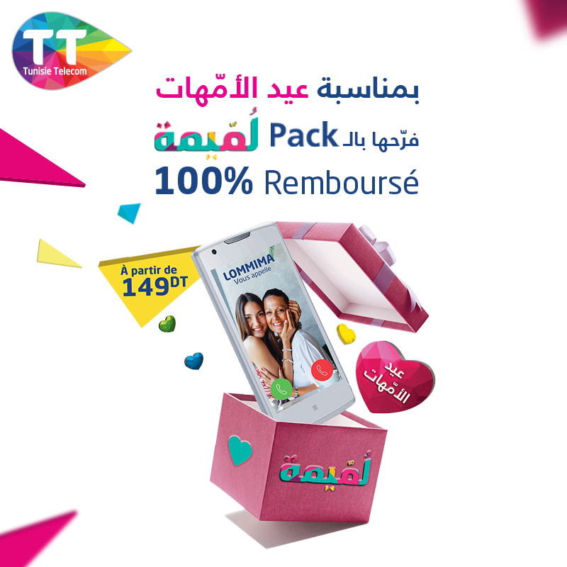 مع إقتراب مناسبة عيد الأمّهات , الموافق ليوم الأحد 28 ماي القادم, خيرّ مشغّل الإتّصالات الوطني إتّصالات تونس, إتحاف حرفائه الأوفياء من خلال تقديم عرض جديد يمكّنكم من التّمتّع بهاتف ذكيّ ( 100% remboursé).