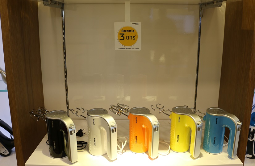 ويتعلّق الأمر بخمسة وسبعين ( 75 ) منتجا من الأجهزة الكهرومنزلية (Evertek Home ) تغطي مجموعات مختلفة : خلّاطات (Batteurs ) و آلات إعداد القهوة و آلات عصير وآلات الطهي بالبخار وآلات قلي البطاطا بالزيت ومن غير زيت وآلات لقطع اللحم وآلات لقطع السلطات والخلاطات الغاطسة (Mixeurs Plongeants ) وآلات الضغط على الثمار (Presse-Agrumes ) وروبوهات متعددة الوظائف وآلات إعداد السندويتشات وإعداد اليوغرت وآلات كيّ الثياب وآلات الكنس الكهربائي وغيرها علما بأن مجموعة العناية بالشعر والجمال ستكون متوفرة بداية من شهر أفريل 2018 .