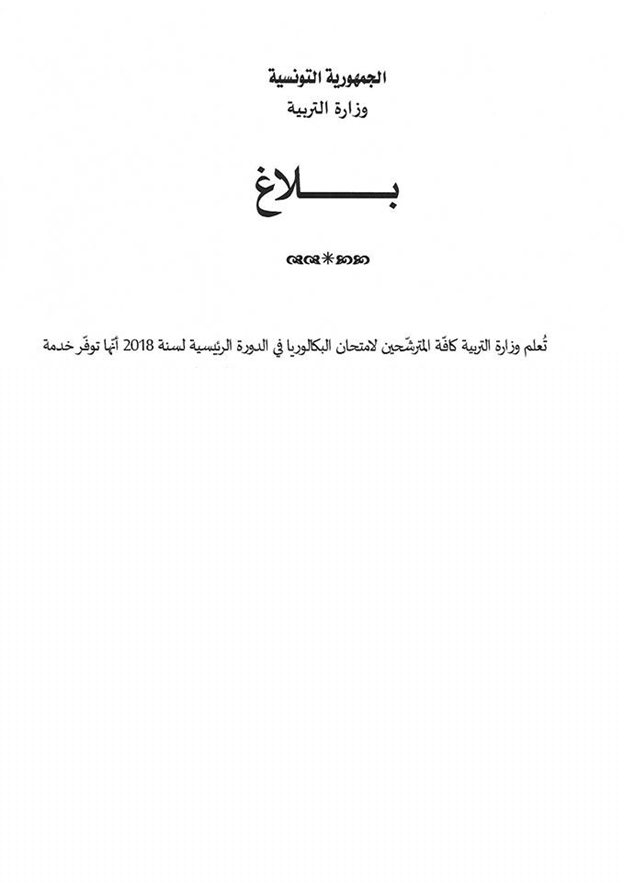 أعلنت وزارة التربية في بلاغ لها عن انطلاق التسجيل في خدمة الإرساليات القصيرة للمترشحين لامتحان البكالوريا ابتداء من يوم الثلاثاء 19 جوان على الساعة العاشرة صباحا.