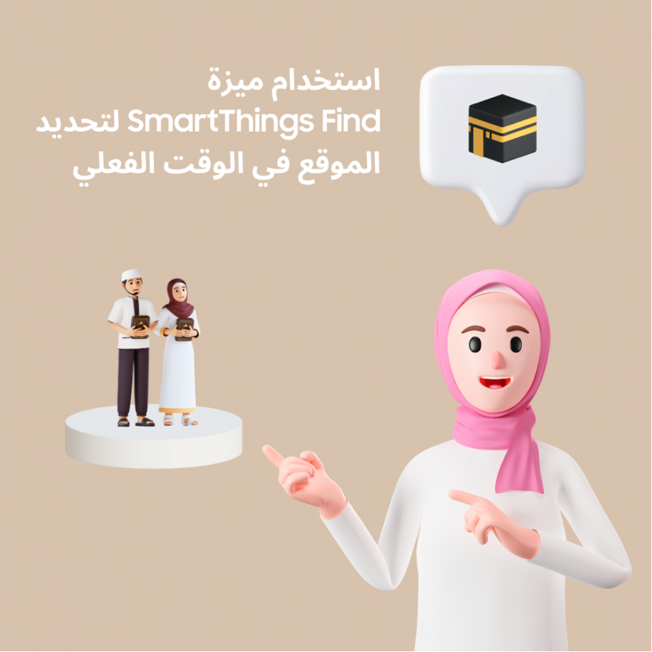 عزز سهولة تجربتك في أداء العمرة من خلال استخدام ميزة SmartThings Find لمشاركة المواقع مع أفراد العائلة في الوقت الفعلي. ومن خلال ربط الهواتف الذكيّة بتطبيق SmartThings يُمكنك بسهولة تتبع موقع كلّ فرد في محيطك، مما يعزز السلامة والتواصل طوال الرحلة.