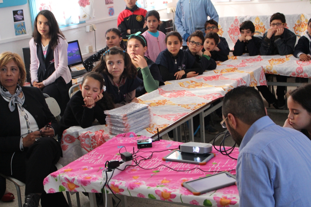 وقد تمّ خلال يومي الثلاثاء والاربعاء 21 و22 مارس 2017 تزويد المدرستين الإبتدائيتين الإمتياز بحي ابن سينا- تونس 1 والمدرسة الإعدادية ابن خلدون 3 بحي ابن خلدون- تونس 2 بمعدات وأجهزة لوحية رقمية تتضمن محتويات تربوية وبيداغوجية.
