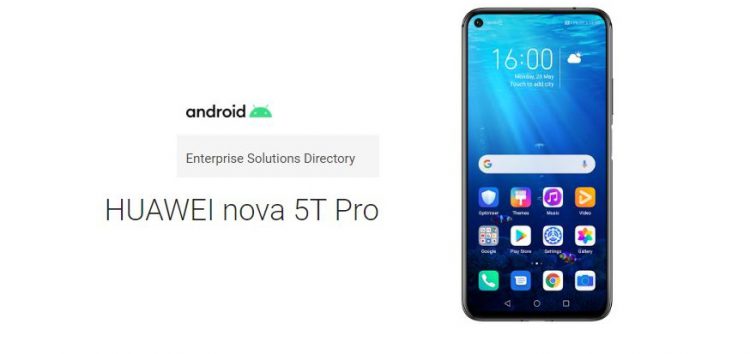 يبدو أن هاتف هواوي Nova 5T المعلن عنه في شهر أوت الماضي سيستقبل عما قريب أخا جديدا وذلك بعد أن لاح هاتف Nova 5T Pro على موقع Android Enterprise Solution Directory .