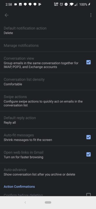 وعلى الرغم من أن التحديث متوفر حاليا على أحدث إصدار من تطبيق Gmail ، إلا أن شركة غوغل ما تزال تعمل على تطويره وتثبيته. هذا وتجدر الإشارة إلى أن الوضع المظلم متواجد فقط داخل إعدادات تطبيق Gmail ، حيث لا يمكن لك ايجاده على النافذة الرئيسية أو على الشريط الجانبي. كما يبدو أن الوضع ما يزال تحت الإختبار وغير قار بالمرة ذلك أنه يشتغل تارة ويتوقف أخرى وقت ما يريد.