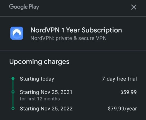 تبلغ أسعار NordVPN ما يعادل 12 دولار شهريّا و 60 دولار سنويّا و 79 دولار لمدّة عامين.