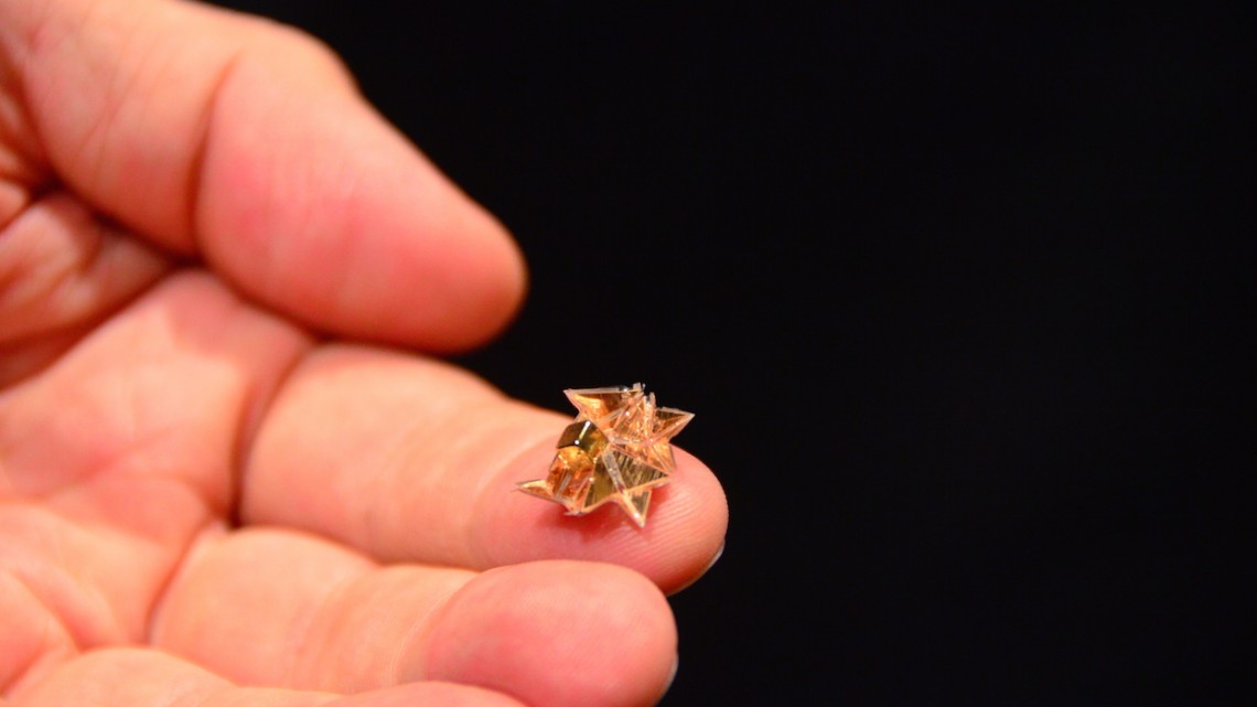 هذا الرّوبوت الصّغير من Origami ذي 1.7 صم من الجانب و يزن 0.31 غرام , مصنوع من مادّة كلوريد متعدّد الفاينيل , و يمكن له أن يتنقّل سواء على اليابسة أو في الماء بسرعة 3 أو 4 صم في الثانية و ذلك بمساعدة مغناطيس كهربائي مثبّت تحت الطّاولة .