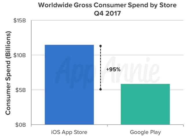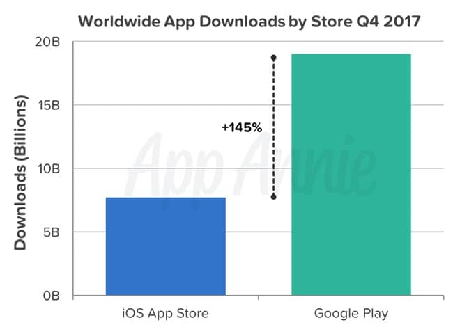 Home الموبايلجوجل بلاي يتفوّق في عدد التطبيقات المحملة لكن متجر أبل يحقق ضعف المداخيل