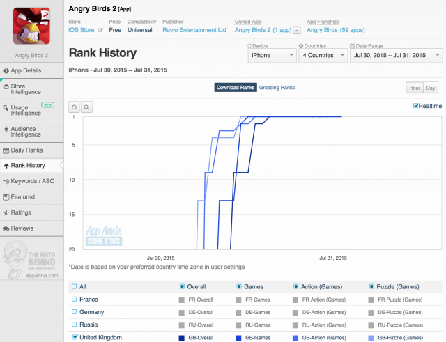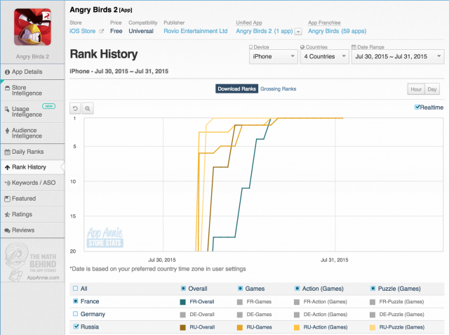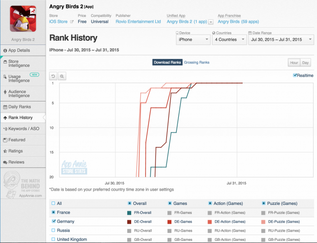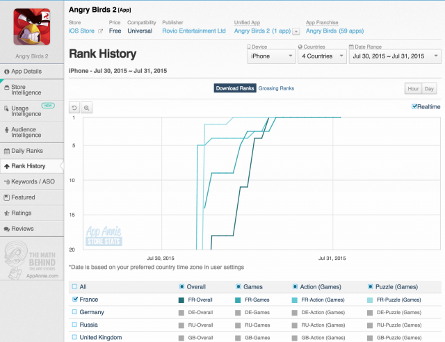 من ثمّ , و حسب App Annie , و هي منصّة تحليليّة خاصّة بالتّطبيقات ,فاللّعبة ستكون ,من الآن فصاعدا , اللّعبة رقم 18 في قائمة أكثر الألعاب تحقيقا للأرباح ,في صنف Puzzle خاصّة في 4 بلدان ,فرنسا ,ألمانيا ,بريطانيا و روسيا .