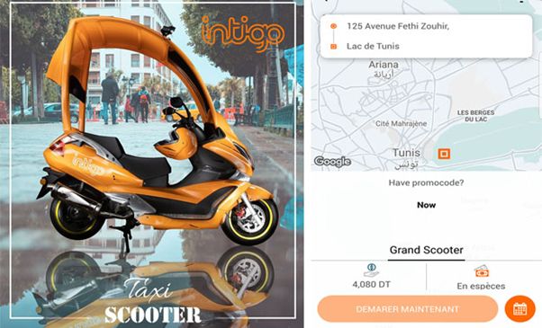 Intigo هي أول شركة دراجات نارية أجرة في تونس. بفضل الأسطول الكبير من الدراجات النارية ذات السقف ، تقدم لك Intigo خدمة نقل الركاب بالإضافة إلى العديد من الخدمات اللوجستية مثل التسليم السريع.