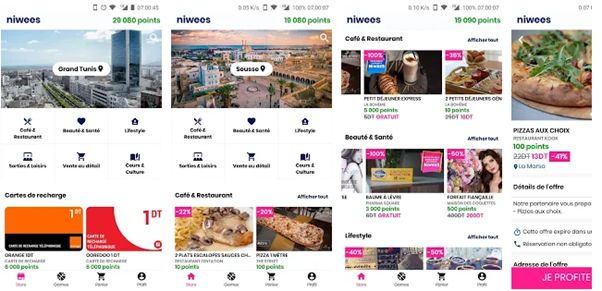 بعد تنزيل التطبيقة، سيظهر إعلان على هاتفك المحمول أثناء اتصالاتك لتربح نقاط Niwees في كل مرة مما يتيح لك الاستفادة من عدد لا حصر له من التخفيضات والقسائم في أكثر من 500 مؤسسة.