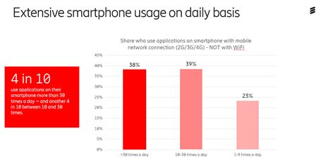 و فيما يتعلق باستخدام تطبيقات الهواتف الذكية، تظهر الدراسة أن 4 مستهلكين من ضمن 10 يستعملون التطبيقات على هواتفهم أكثر من 30 مرة في اليوم بينما يستخدمها 4 اخرين من بين 10 ما بين 10 و 30 مرة.