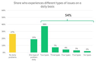 كما تكشف الدراسة أيضًا أن العديد من المستخدمين لا يزالو يواجهون مشاكل في الشبكة، اذ غالبًا ما تكون عبارة عن مشاكل مختلفة في اليوم الواحد. فهم 7 مستهلكين من بين 10 يواجهون مشاكل في الشبكة يوميا لى هواتفهم الذكية وما لا يقل عن نسبة 54 ٪ منهم يواجهون نوعين من المشاكل على الاقل. و بالتالي فان تجربة الشبكة لها تأثير كبير على الولاء.