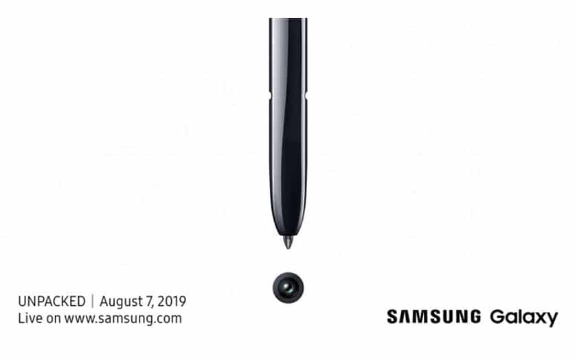 حيث أكدت شركة سامسونج أنها ستكشف النقاب عن هاتف جديد ضمن حدث يحمل إسم Galaxy Unpacked في مدينة نيويورك الأمريكية بتاريخ 7 من شهر أوت. هذا ولم تذكر الشركة صراحة عن ماذا ستعلن ضمن هذا الحدث ولكنها شاركت مقطع فيديو الذي يعرض قلما إلكترونيا S Pen وكاميرا واحدة الأمر الذي يشير بوضوح إلى أن هاتف Galaxy Note 10 سيكون حتما نجم العرض.