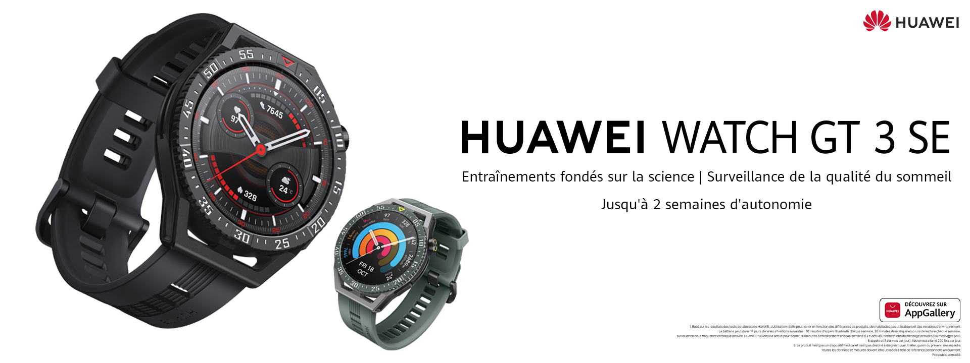 أحدث ساعة ذكية في سلسلة HUAWEI WATCH GT 3 – ساعة HUAWEI WATCH GT 3 SE متاحة الآن على الموقع الرسمي لهواوي وتجار التجزئة المختارين في تونس. تجمع الساعة الذكية بين عمر طويل الأمد للبطارية وميزات عملية مثل أوضاع التمرين العلمية ومراقبة صحة النوم. تجسد ساعة HUAWEI WATCH GT 3 SE احتياجات المستخدمين الذين يحبون الاستكشاف والمستخدمين الحضريين وعشاق الرياضة واللياقة البدنية والأفراد المهتمين بالصحة. تتناول ساعة HUAWEI WATCH GT 3 SE مشكلات المستخدمين وتسمح لهم بالسفر برفق لاحتضان الطبيعة المحيطة مع تصميم خفيف الوزن.