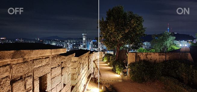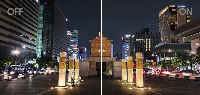 هذا وقد التقطت الصور بإستخدام عدسة كاميرا هاتف +Galaxy S10 وتحديدا بإستخدام الكاميرا الرئيسية والكاميرا ذات الزاوية الفوق موسعة. وفيما يلي مقارنة بين صور الوضع العادي وصور الوضع الليلي.