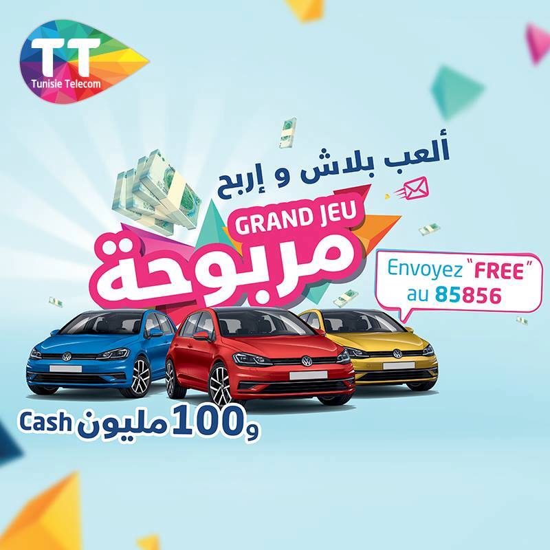 أطلق مشغّل الإتّصالات الوطني الرّائد, إتّصالات تونس, منذ ساعات, لعبته الكبرى , و الّتي تضمن للمشاركين فيها الفوز بجوائز متنوّعة , تتمثّل في سيّارة و مبالغ ماليّة هامّة تصل حتّى 100 ألف دينار نقدا .