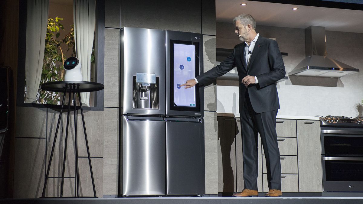 ثلّاجة InstaView ThinQ من LG الجديدة مزوّدة بأبواب تتحوّل لتصبح شفّافة, لكي تكشف عمّا يوجد داخلها, حينما يطرق عليها المستعمل مرّتين. هذا و تمتلك الثّلّاجة شاشة ملمسيّة بحجم 29 بوصة, و هي تعمل بنظام webOS.