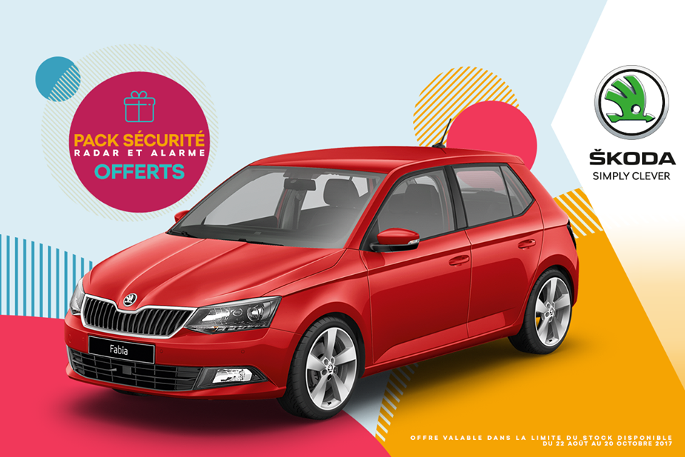 هذه الباقة تحتوي على “رادار” (radar de recul) , إضافة إلى منبّه (alarme) , و هو ما يضفي على سيّارتكم مزايا تكنولوجيّة إضافيّة, تنضاف إلى خصائصها التّقنيّة الرّفيعة و تصميمها الجذّاب . مع العلم أنّ سعر سيّارة Fabia Drive محدّد ب40.480 ألف دينار . فبادروا بزيارة معرض علامة Skoda بحلق الوادي, لإكتشاف مميّزات منتوجاتها.