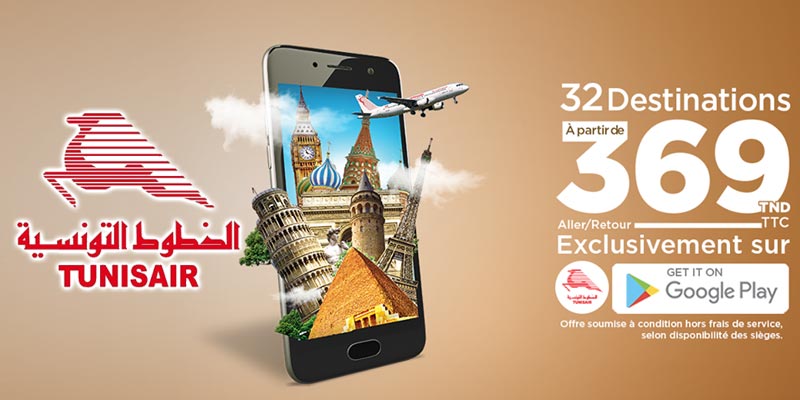 بمناسبة إطلاقها لتطبيقتها الإلكترونيّة الجديدة على الهواتف الذّكيّة العاملة وفق نظام أندرويد, أعلنت شركة Tunisair عن عرضها التّخفيضيّ الجديد, و الّذي يمكّنكم من إختيار وجهتكم و موعد سفركم, و ذلك مقابل 369 د (ذهابا و إيابا).