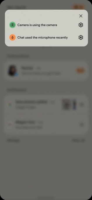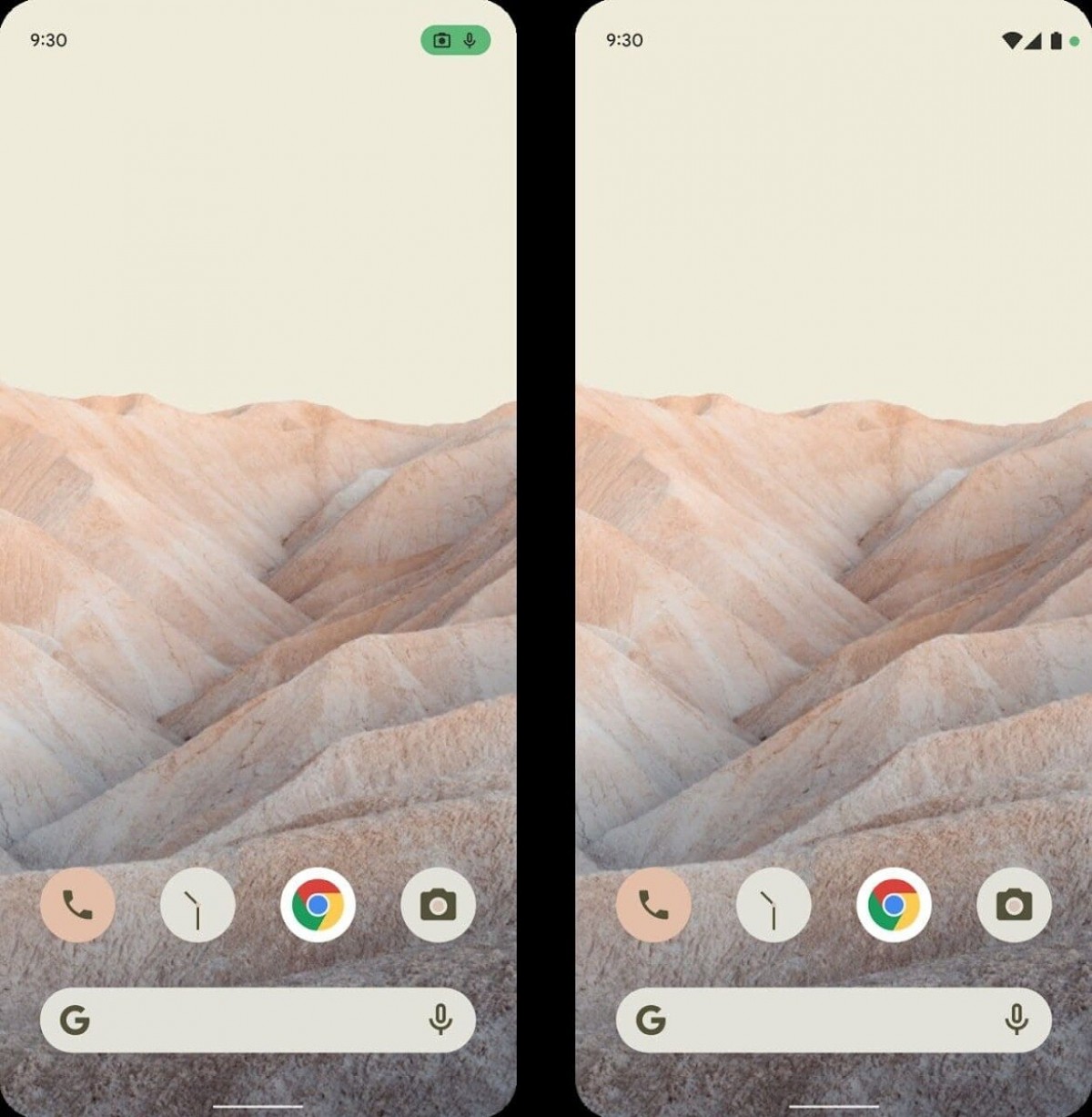 ابزر ما يلفت انتباهنا في الصورة الأولى هو إضافة خانة في أعلى الشاشة لإشعار المستخدم بأن إحدى التطبيقات بصدد إستعمال الكاميرا أو المايكرفون.