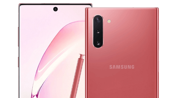 تشير صور نشرها موقع WinFuture الألماني إلى أن هاتف سامسونج Galaxy Note 10 سيتوفر في اللون الوردي إلى جانب كل من اللون الأبيض والفضي والأسود. كما ذكر الموقع بأن نسخة الهاتف الوردية ستتوفر فقط في عدد من البلدان المحددة.