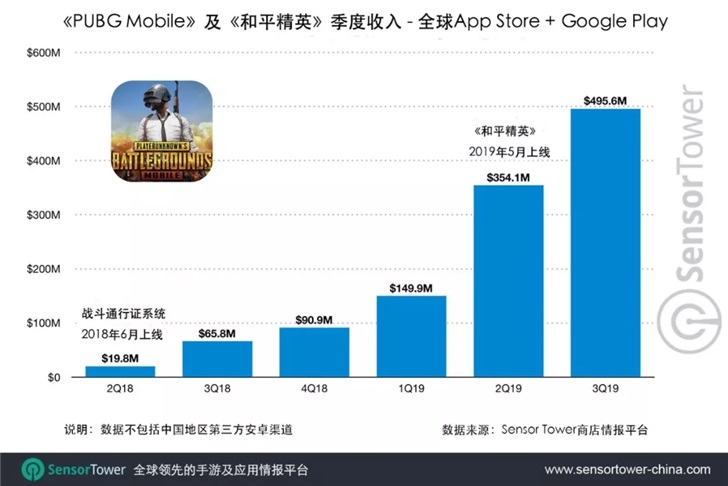 كما أفاد التقرير بأن إجمالي الإيرادات العالمية للعبتي PUBG Mobile و Peace Elite قد تجاوز 1.3 مليار دولار في عام 2019 فقط وهو ما يمثل 88% من قيمة الإيرادات الجملية منذ إطلاقها الأولي في عام 2018.