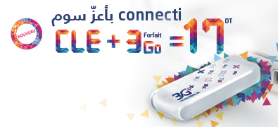 يقدّم لكم مشغّل الإتّصالات الوطني عرض مفتاح تشغيل الإنترنت مسبق الدّفع من إتّصالات تونس يسمح لكم بالتّمتّع بمفتاح ( Clé ) من الجيل الثّالث ( 3G ) ذي 21 ميقا-بايت مقابل سعر مميّز و مع عرض Dima@Net مسبق الدّفع ذي 3 جيقا-أوكتي متاحة لمدّة 30 يوم , و الكلّ مقابل 17 د .ت .
