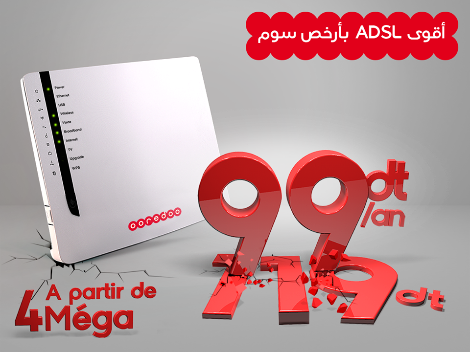 يقدّم مشغّل الإتّصالات الرّائد في تونس , أوريدو كالعادة أفضل و أهمّ العروض . و في هذا الإطار , أنتم على موعد مع عرض تخفيضي جديد يهمّ خدمة الADSL .
