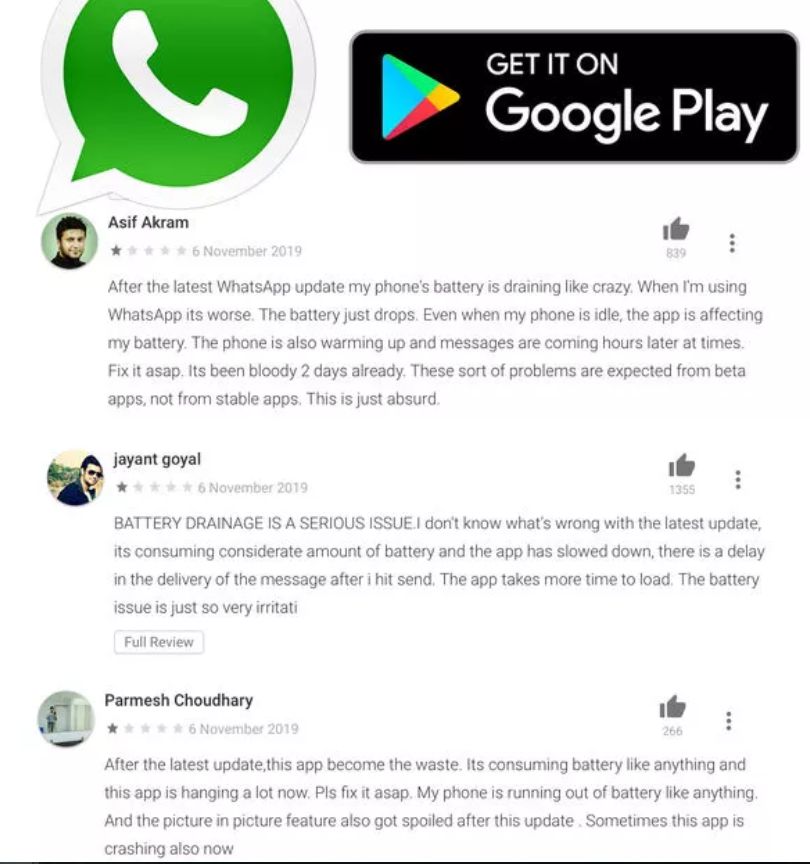 إشتكى مؤخرا عدد من مستخدمي الهواتف الذكية من إستنزاف النسخة الأخيرة من تطبيق Whatsapp لبطارية هواتفهم بنسبة تصل إلى أكثر من 50%.