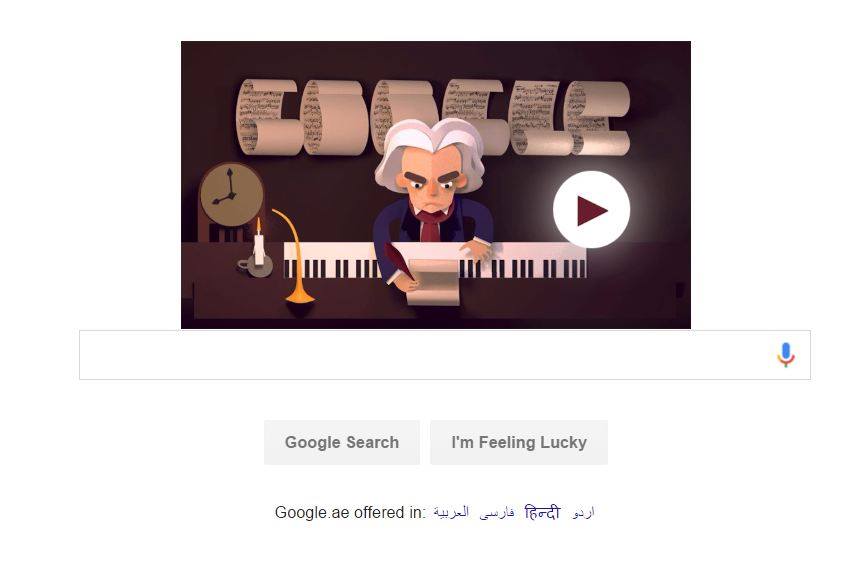 طالعتنا صباح اليوم 17 ديسمبر على محرّك البحث الشّهير غوغل , أيقونة كاريكاتوريّة تمثّل الموسيقار الألماني الشّهير لودفيغ فان بيتهوفن . و تأتي هذه الصّورة إحتفالا بالذّكرى رقم 245 لميلاد الموسيقار الأسطورة الّذي لازالت سمفونيّاته تشنّف آذاننا إلى اليوم .