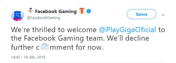 هذا وكانت فيسبوك قد غردت على صفحتها Facebook Gaming على موقع التواصل الإجتماعي تويتر مؤكدة خبر شراء الإسبانية التي رحبت بانضمامها لفريق Facebook Gaming .