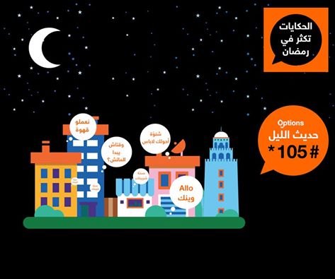 خلال السّهرات الرّمضانيّة , يحلو الحديث مع الأصحاب و الأحباب . و لهذا السّبب , إختار مشغّل الإتّصالات الرّائد أورانج تونس أن يتحف حرفائه بعرض جديد يحمل إسم ” حديث اللّيل” . حيث يمكنكم إختيار التّوقيت الّذي تريدون الإتّصال خلاله , و محادثة أحبّائكم ( en illimité ) و مقابل دينار فقط .