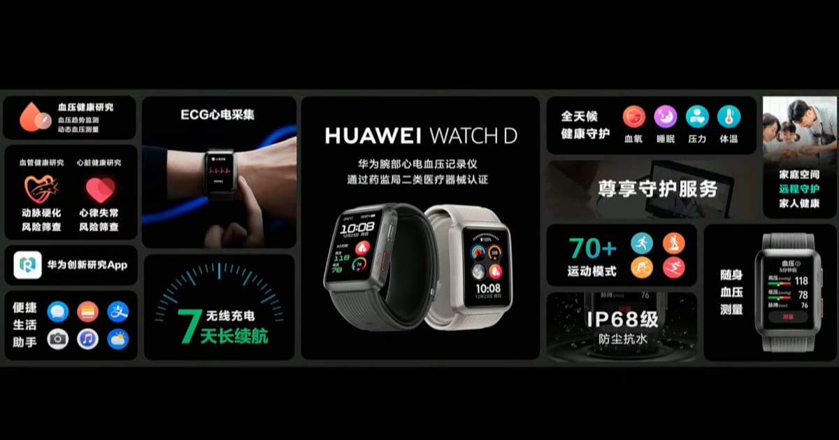 أما ساعة Watch D الذكية فتتميز بكونها مقاومة للماء فضلا عن أنها تدعم مزايا عدة كقياس ضغط الدم ومعدل نبضات القلب.