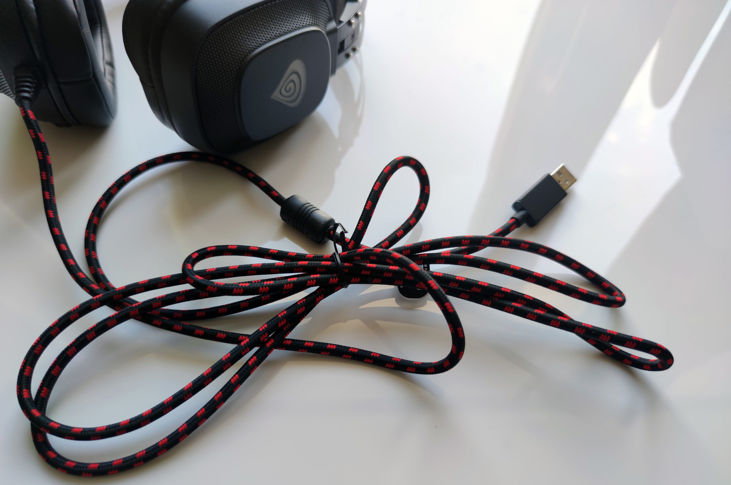 يأتي سلك الوصل بطول 2 متر وهذا جيد ليتحرك المستخدم بأريحية، تغطيه ضفائر ممزوجة باللونين الأسود والأحمر وفي آخره موصل من فئة USB A.