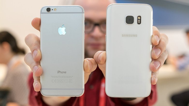 البداية من الولايات المتّحدة الأمريكيّة , فمع نهاية الرّبع الثّاني من عام 2016 الجاري , سجّلت علامة سامسونغ نسبة 37 % من مبيعات الهواتف الذّكيّة متفوّقة على آبل الّتي بلغت مبيعاتها 29 % من السّوق الأمريكيّة فقط . و من جهة أخرى , فقد تقاربت نسب مبيعات أحدث إصدارات لهما : غالاكسي S7 و آيفون 6s , حيث بلغت نسبة مبيعات الهاتف الأوّل 16 % , في حين بلغت نسبة الهاتف الثّاني 14.6 % .