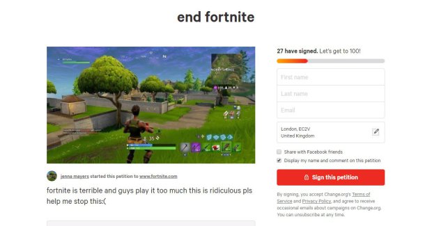 توجد الآن عشرات التّواقيع على الموقع الإلكترونيّ Change.org , الّتي بدأت بتسجيلها مجموعة من النّساء اللّواتي أزعجهنّ تأثير لعبة Fortnite على رجالهنّ.