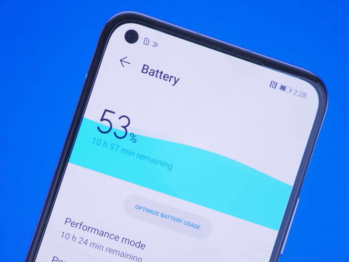 عند إخضاع الهاتف للتجربة مع تخفيض في مستوى إستهلاك الطاقة نسبيا، حافظت البطارية على الشحن لمدة 28 ساعة و 7 دقائق.
