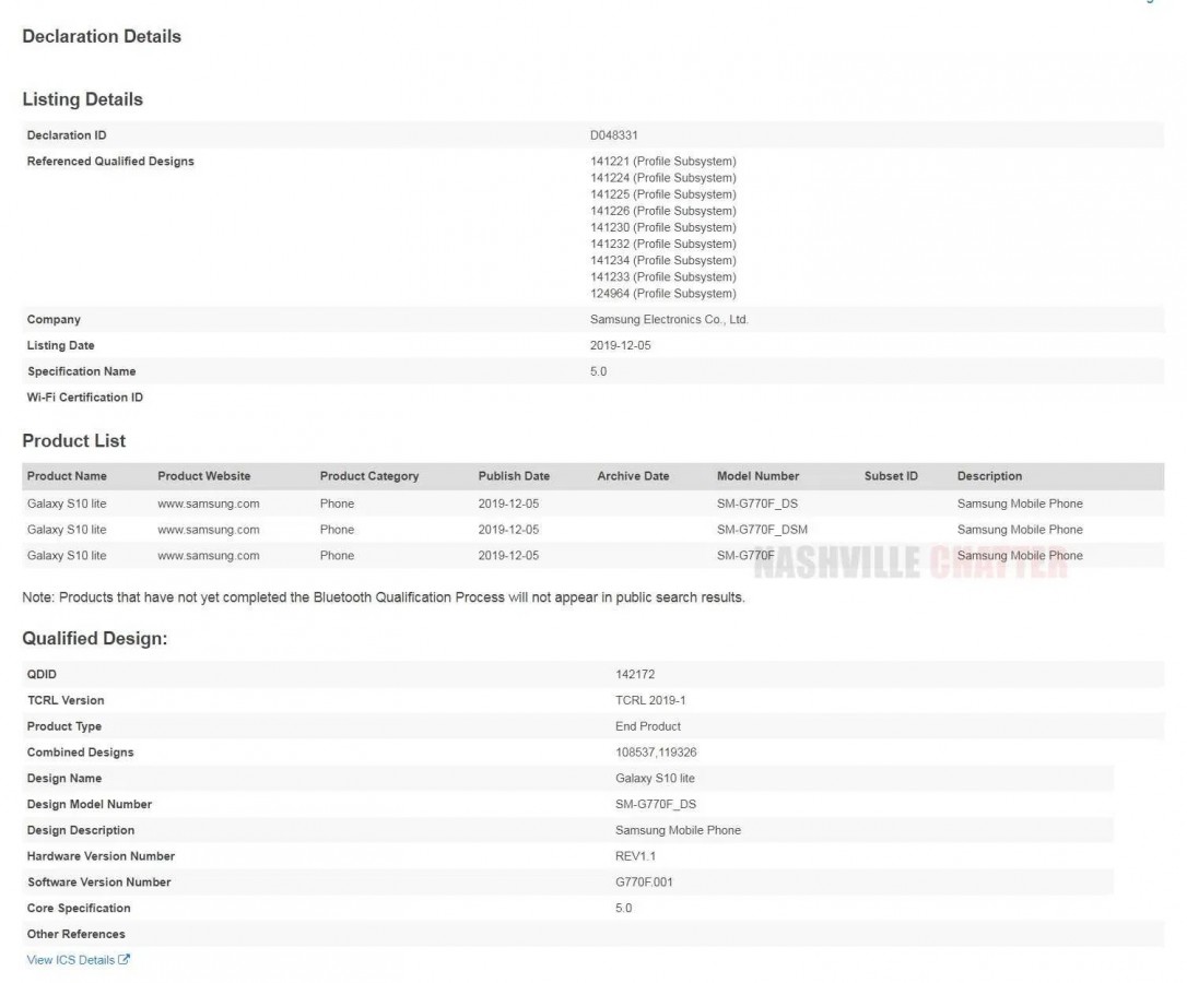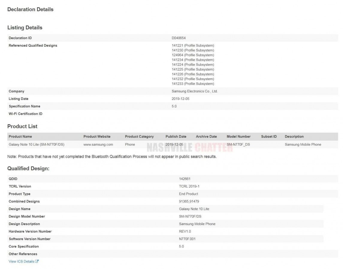 تحصل اليوم هاتفا سامسونج Galaxy S10 Lite و Galaxy Note 10 Lite الحاملان لرقمي الموديل SM-G770F و SM-N770F على التوالي على موافقة هيئة Bluetooth SIG التي أكدت على إقتراب موعد الإعلان عنهما.