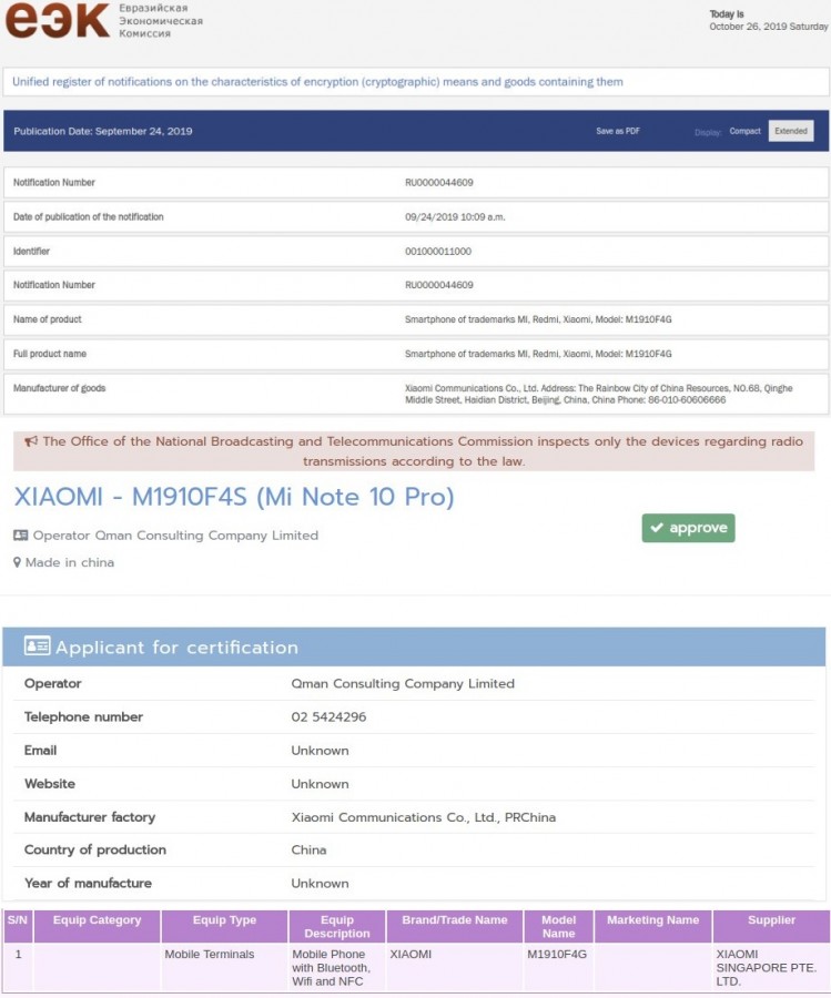 لاح منذ أيام هاتفا شاومي Mi Note 10 و Mi Note 10 Pro على مواقع عدد من الهيئات والوكالات مشيرين إلى إقتراب موعد الإعلان عنهما.