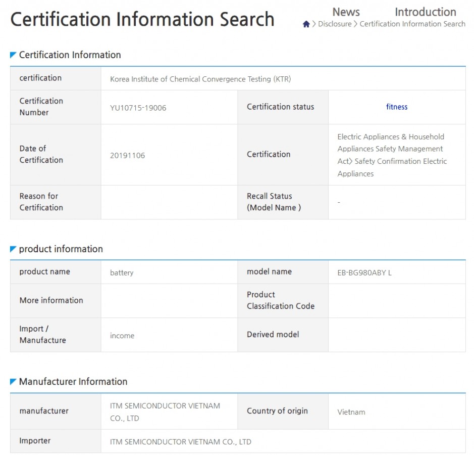 لاح اليوم هاتف سامسونج Galaxy S11 الحامل لرقم الموديل SM-G980 على موقع SafetyKorea الذي كشف على أن الهاتف سينطوي على بطارية (EB-BG980ABY) بقوة 3730mAh.