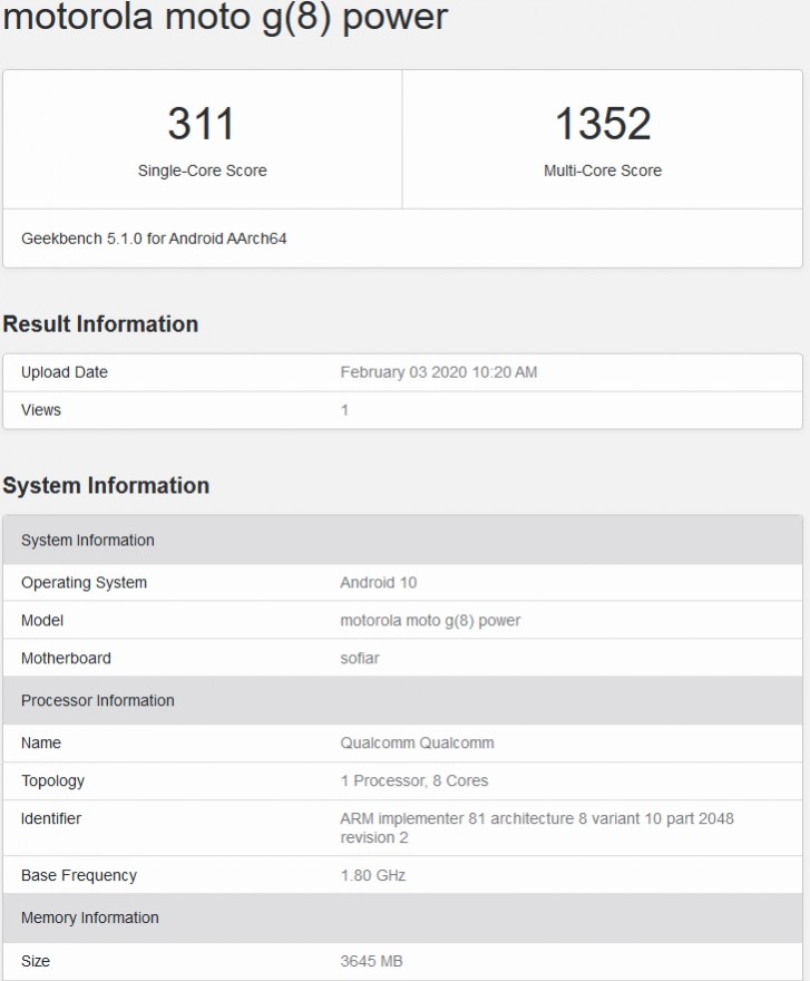 يبدو أن سلسلة الهواتف موتورولا G8 التي تضم كلا من هاتف G8 Plus و G8 Play ستستقبل عما قريب فردا أخر ضمن المجموعة، وذلك بعد أن زار هاتف G8 Power منصة قيس الأداء الشهيرة Geekbench التي كشفت عن بعض من مواصفاته.