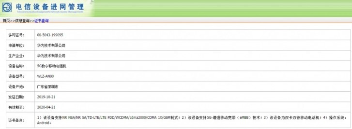 تحصل منذ أيام هاتفان للعلامة التجارية هواوي يعتقد بأنهما هاتفا Nova 6 نسخة 4G وأخرى 5G على موافقة هيئة الإتصالات الصينية TENAA. كما تحصل أيضا هاتف للعلامة التجارية Honor يعتقد بأنه هاتف Honor V30 5G على موافقة الهيئة .