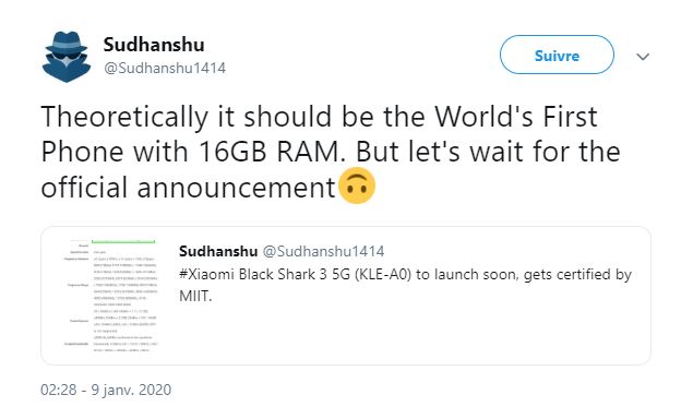 ووفقا لأخر المستجدات، فإن هاتف Black Shark 3 5G لن يتميز فقط بدعمه للجيل الخامس من شبكات الإتصال، وإنما سيضم ذاكرة وصول عشوائي بسعة 16GB ليكون بذلك أول هاتف في العالم مع مثل هكذا سعة تخزين.
